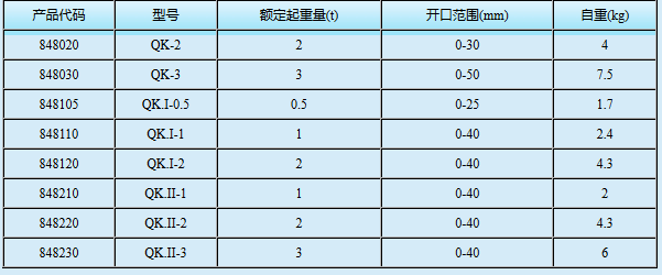 QK型吊運(yùn)卡蘭主要用于鉚焊鋼結(jié)構(gòu)定位及型鋼吊運(yùn)。